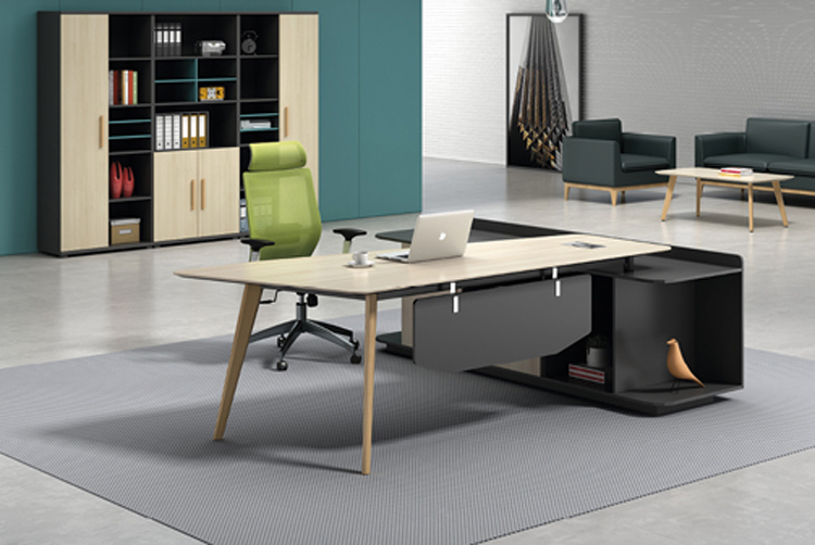 现代简约经理主管桌,忙碌的工作中难免会遇到不顺心的事,这时候换种姿势,换种心情,会有意想不到的收获。 班台配套侧柜,可放置皮包等大件物品,让您的办公室井井有条。工匠造美物,从简单中造出美。